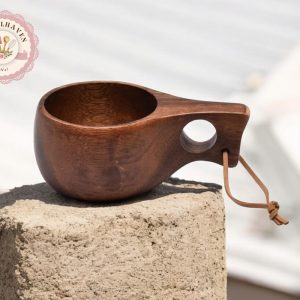 Carved Wooden Camping Mug | Rope Carrying Handle Cup | Tableware Bowl Bushcraft