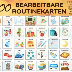 500 customizable, changeable routine cards Montessori weekly planner daily schedule instant download printable German children’s plan board cards PDF