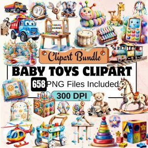 658 Baby Toys Clipart, Watercolor nursery Clipart PNG Bundle, Cute Infant Plaything Images,Children Toy Graphics, Boho baby toys