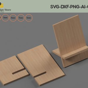 Laser Cut Wooden Phone Stand Files with Adjustable Angle, 3mm 1/8 inch Phone Stand Svg Dxf Ai Cut File