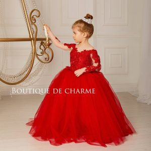 Tutu flower girl dress, Tulle flower girl dress,Flower girl dress lace,Long sleeve girl dress,Red toddler dress,Girl wedding dress,Girl gown