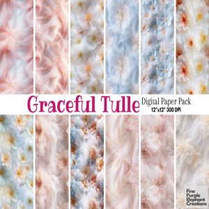 Tulle Party Dress Digital Paper | Flower Ballerina Sublimation | Elegant Floral Lace Fabric Texture Pattern | Whimsical Princess Scrapbook