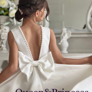 Satin flower girl dress Elegant girl dress Flower girl dress with pearls, Ivory girl dress, Photoshoot dress, Flower girl dress with train