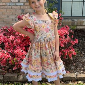 Soft Cotton Personalized Dress Girls Fairytale Birthday Outfit Blue & White Dress for Girls Handmade Floral Dress Toddler Girl Party Attire
