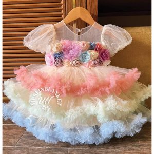 Rainbow Flower Tutu Dress for Girl, Birthday Tulle Dress for Kids, Toddler Ballerina Dress, Floral Christmas Dress, Dainty Princess Dress